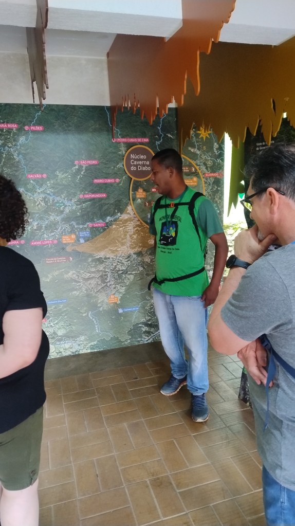 A Caverna do Diabo oferece passeios desde o nível fácil ao difícil. O roteiro tradicional é o mais tranquilo, levando até 1h30 de percurso nos 600m de galerias, onde o visitante ouve explicações sobre as formações rochosas, a história da descoberta do local, as lendas e causos, além de “visualizar” esculturas naturais que têm apelidos como Castelo da Disney, sapo, bacon, cabeça de ema, Branca de Neve, o nariz do diabo, a cabeça do macaco, a mão de Deus, o Mestre dos Magos, o gorila, as velas de promessas, a pia batismal ou fonte da juventude e outros que sua imaginação permitir! Na caverna também são realizados roteiros mais difíceis, como a Garganta do Diabo, trecho feito por dentro do rio que passa no local, o Salão Erectus, o rapel e a travessia, um iitinerário que dura mais de 10 horas e que acontece apenas algumas vezes ao ano. O passeio noturno é uma opção para quem quer ver os cogumelos bioluminescentes! Ao pagar a entrada do parque, o visitante também tem direito a visitar o Mirante do Governador e a Cachoeira do Araçá. Clique aqui para saber mais sobre os passeios e para adquirir seu ingresso antecipadamente.